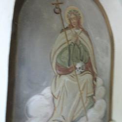 die vermutlich vom Maler Ortenberg stammten. Dargestellt sind dort auf der linken Seite die Heilige Dorathea mit den Rosen, bedeutet eigentlich „Gottes Geschenk“ (griechisch), und auf der rechten Seite der Erzengel Gabriel, bedeutet eigentlich „Mann Gottes“ (hebräisch).