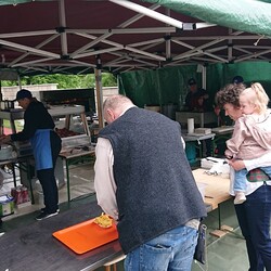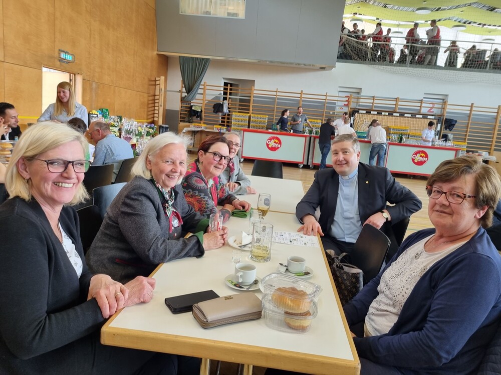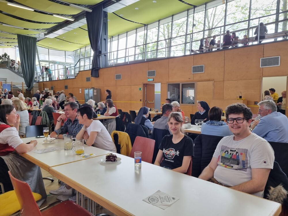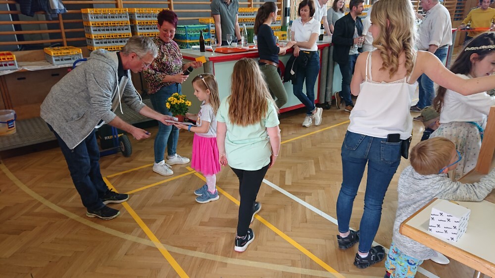 Nach der wunderschön gestalteten Erstkommunion zogen die Erstkommunionkinder in die Halle um beim Start des Pfarrfests dabei zu sein. Nachdem wir letztes Jahr richtiges Wetterglück hatten, mussten wir diesmal in die Veranstaltungshalle ausweichen. Dem Wetter zum Trotz war die Stimmung sehr gut. Das Kinderprogramm war gut besucht, viele Preise wurden verlost und natürlich gab es wieder genug zu essen und zu trinken. Obwohl diesmal besonders viele Torten gebacken wurden, waren am Schluss alle weg.