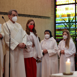 Am Gründonnerstag feierten wir eine gemeinsame Seelsorgeraum-Messe in der Pfarrkirche Lieboch. Mit dabei waren drei Priester, drei Diakone, drei Pastoralreferentinnen, über 20 Ministranten und verschiedene weitere Dienste aus unseren sechs Pfarren.